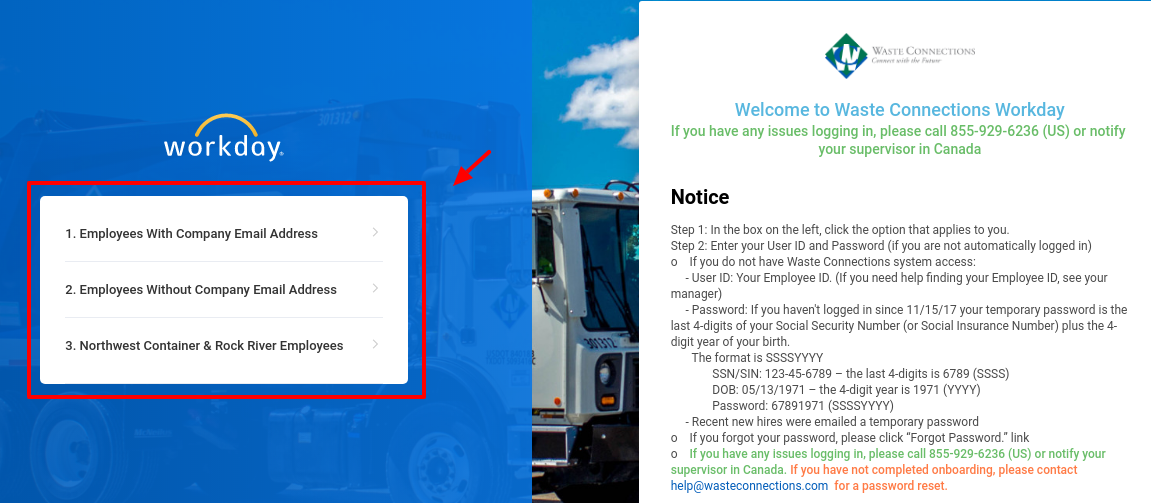 The ordinary worker login page or self improvement gateway just offers one sort of class under which the framework can be gotten to. In view of the three distinctive login classifications accessible, it's protected to state the My Workday Waste Connections entry is ranch from run of the mill. Upon landing in the entry, the client will initially need to decide if to login in as a worker with an organization email address, as a representative without an organization email address, or a Northwest Container and Rock River worker. Representatives without an organization email address as well as a Northwest Container and Rock River workers can finish the login procedure by just tapping the ideal class and entering a username and secret word. Be that as it may, workers with an organization email address will be diverted to the Waste Connections single sign nearby where an area and secret key can be entered to login. Representatives who are experiencing difficulty signing into the My Workday Waste Connections entrance might need to take a couple of moments to audit the guidelines presented off on the correct hand side of the screen.